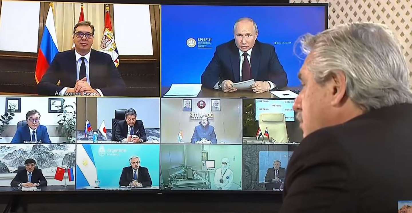“Le estamos inmensamente agradecidos”, dijo Fernández a Putin. “Decimos en Argentina que los amigos se conocen en los momentos difíciles, y cuando pasamos un momento difícil, el gobierno de Rusia, el Fondo soberano de Rusia, el instituto Gamaleya estuvieron al lado de los argentinos, ayudándonos a conseguir las vacunas que el mundo no nos estaba dando”.