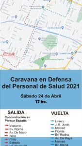 La convocatoria señala que el objetivo es respaldar el accionar del personal de salud y repudiar actitudes autoritarias que nada tienen que ver con la mejora de la calidad de atención de la comunidad en tiempos de pandemia.