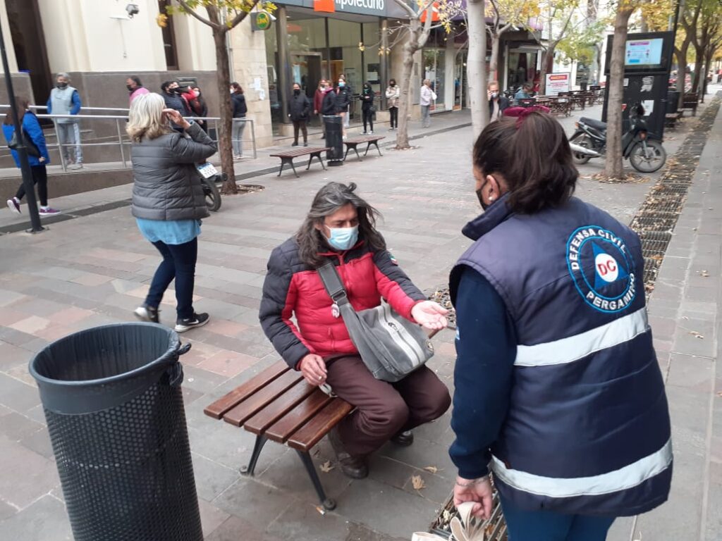 Tal es así que entregan barbijos, aplican alcohol en las manos y dialogan con los vecinos para evitar el amontonamiento de personas en lugares concurridos como bancos o dependencias gubernamentales.