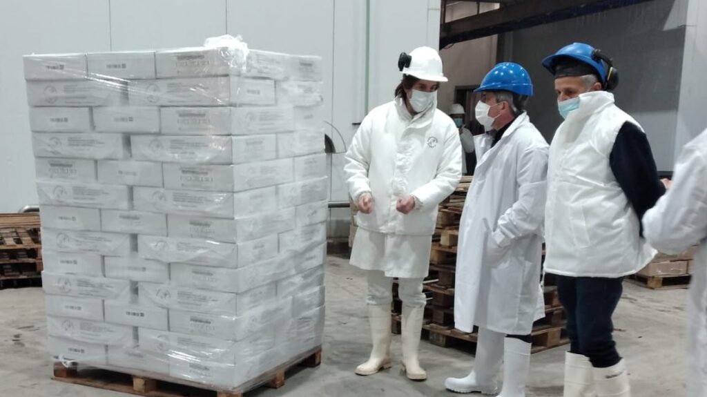 El intendente Javier Martínez acompañó a la avícola en el procesamiento de este primer embarque, junto con el Subsecretario de Asuntos Rurales, Aníbal Figueiras y el Delegado de Guerrico, Iván de Curtis.