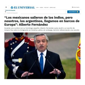 ““Los mexicanos salieron de los indios, pero nosotros, los argentinos, llegamos en barcos de Europa”: Alberto Fernández”, publicó en su portada el periódico El Universal.