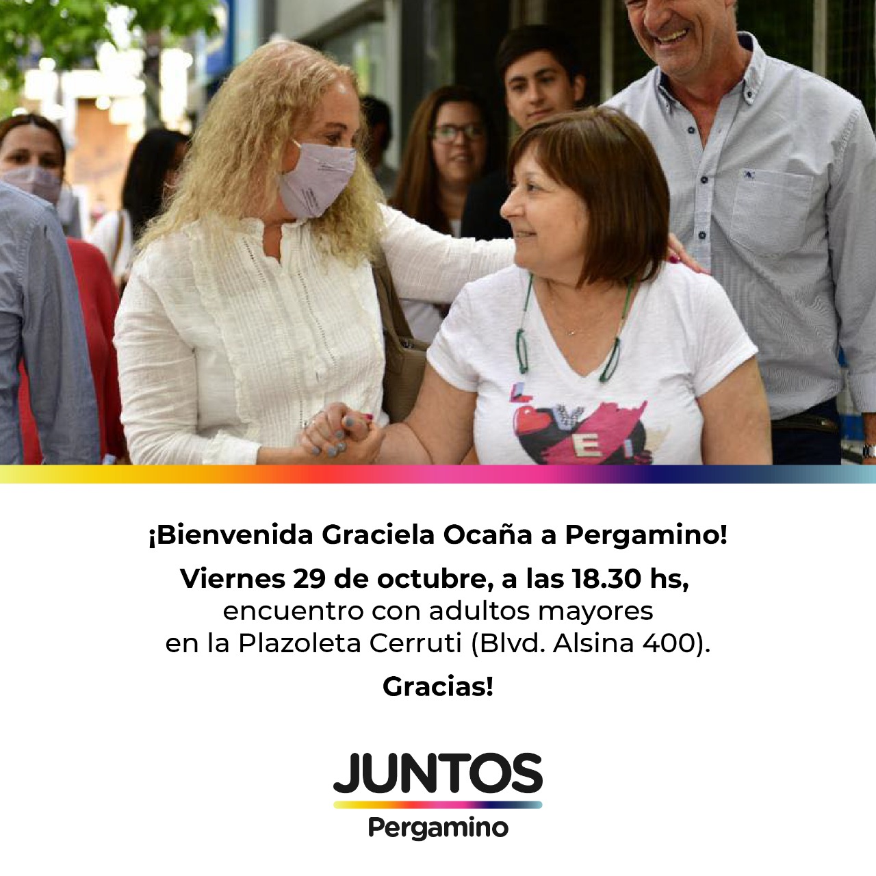 El viernes a las 18:30 en la plazoleta Cerrutti la candidata a diputada nacional de Juntos dialogará con adultos mayores sobre las cuestiones de la actualidad que los preocupan.