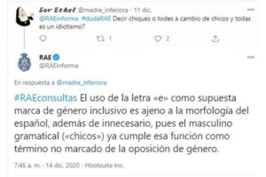 Según su visión, se trata de una manipulación de la lengua para condenar la invisibilidad de la mujer. Y por lo tanto, la Academia insistió en que “el género no marcado abarca explícitamente a los individuos de uno y de otro sexo sin menoscabo de nadie”.