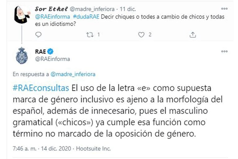 “El llamado lenguaje inclusivo supone alterar artificialmente el funcionamiento de la morfología de género en español bajo la premisa subjetiva de que el uso del masculino genérico invisibiliza a la mujer ya que el uso de la @ o de las letras ‘e’ y ‘x’ como supuestas marcas de género inclusivo es ajeno a la morfología del español, además de innecesario, pues el masculino gramatical ya cumple esa función como término no marcado de la oposición de género”, había detallado la RAE en su “Informe sobre el lenguaje inclusivo y cuestiones conexas”.