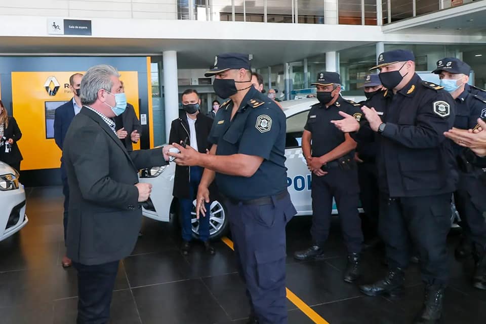 El secretario de Seguridad Ignacio Doddi y el Jefe de la Policía Departamental de Seguridad comisario inspector Pablo Scoropad acompañaron al Intendente en esta entrega de vehículos.