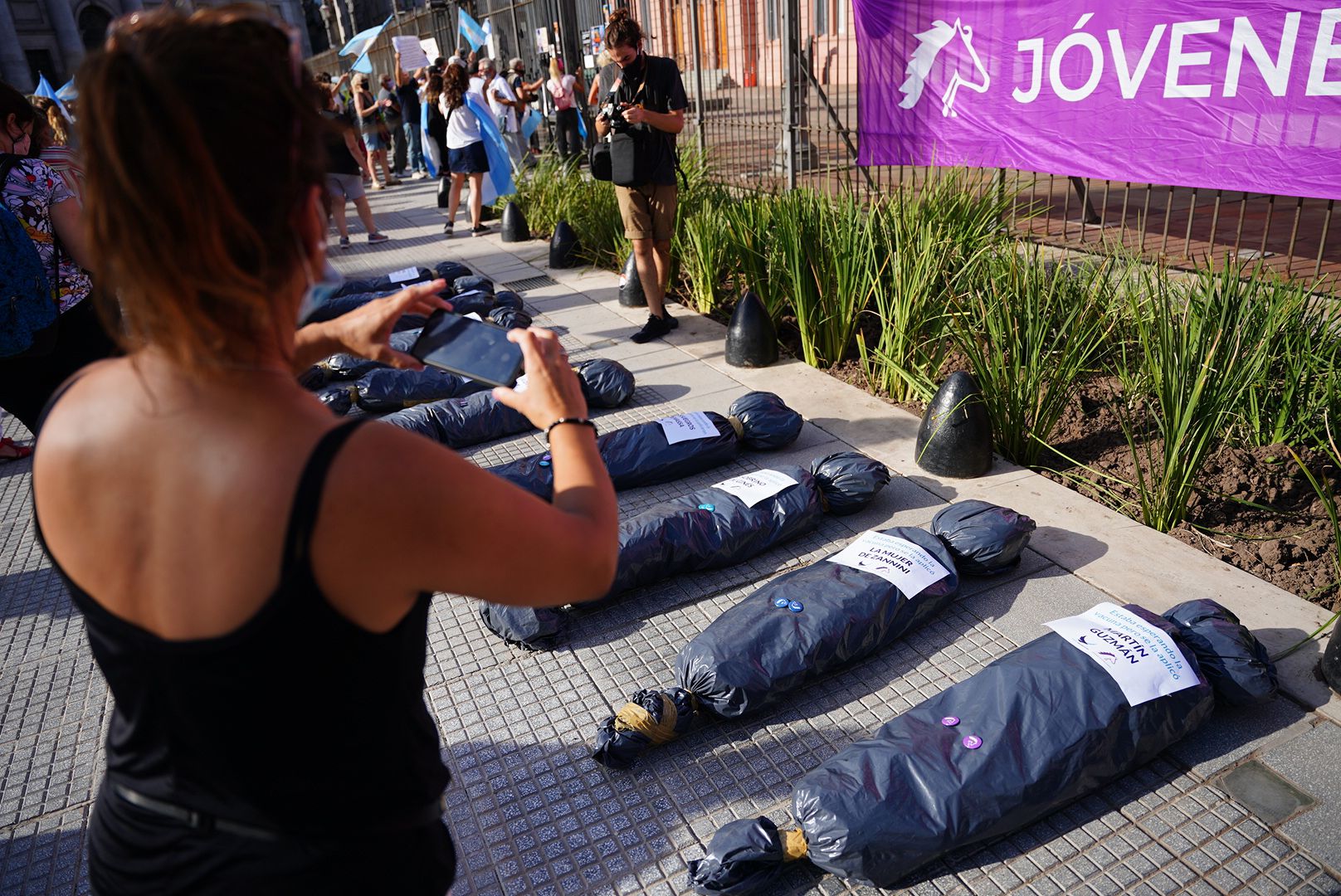 «La forma de manifestarse en democracia no puede ser exhibir frente a la Casa Rosada bolsas mortuorias con nombres de dirigentes políticos», advirtió el jefe de Estado en Twitter, y manifestó que «esta acción lamentable solo demuestra cómo muchos opositores conciben la República».