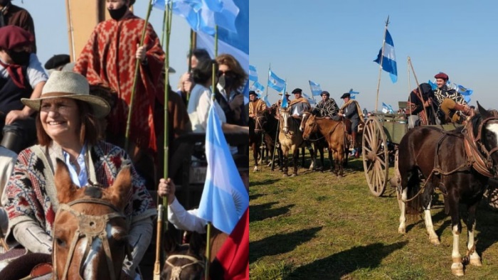 Entre los manifestantes estuvo la exministra de Seguridad y presidenta del PRO, Patricia Bullrich, que desfiló a caballo, vestida con un poncho y sombrero, pese a que los organizadores recalcaron en forma unánime que el encuentro “pertenece a los ciudadanos y no a los políticos” y pidieron tanto que oficialistas como opositores se mantengan al margen del protagonismo en la convocatoria.