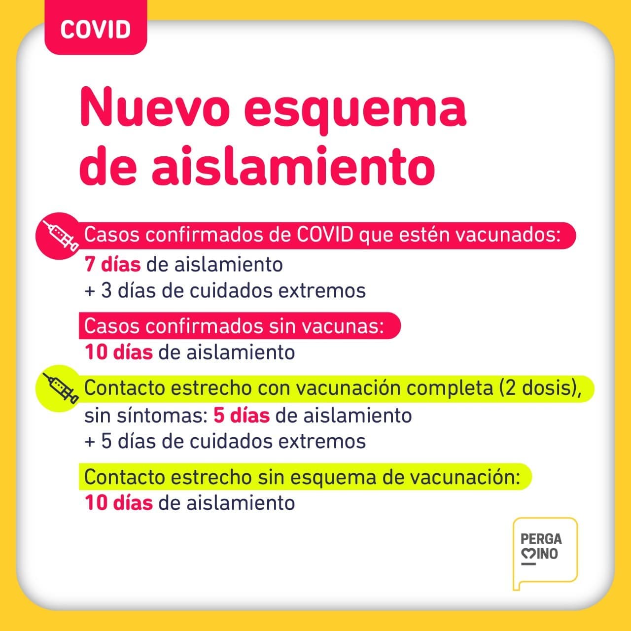 Las autoridades sanitarias de la Municipalidad de Pergamino ha dado a conocer el nuevo esquema de aislamiento para los infectados por Covid y sus contactos estrechos, vigente en el ámbito nacional y provincial.