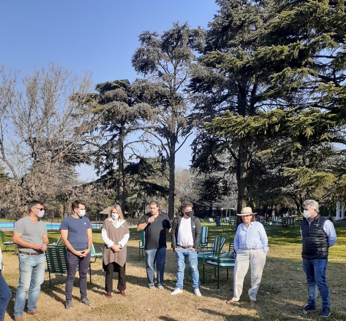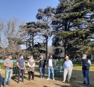 La charla se desarrolló en pocos minutos al aire libre y con las medidas de cuidados y distanciamiento vigentes que exige el protocolo.