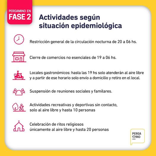 Pergamino continúa rigiéndose con las medidas de restricciones correspondientes a la fase 2 de la pandemia; según lo determinan las autoridades provinciales.