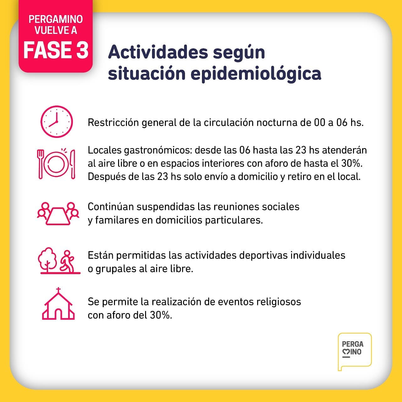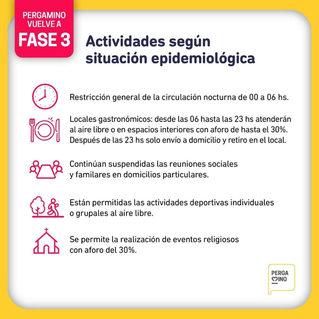 Desde el martes Pergamino se encuentra nuevamente en Fase 3 de las restricciones por las pandemias para evitar contagio.