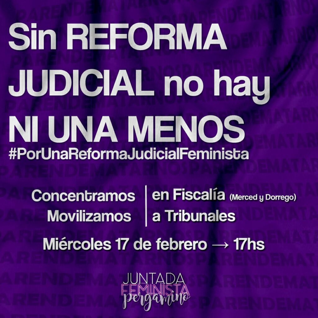 Bajo el lema “Sin reforma judicial no hay ni una menos”, la Juntada Feminista de Pergamino es quien convoca a marchar. Por ello se insta a quienes deseen participar a congregarse en San Nicolás y Dorrego a las 17:00, desde allí se marchará al edificio del Poder Judicial emplazado en Pinto y Monteagudo.
