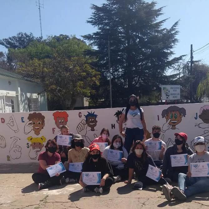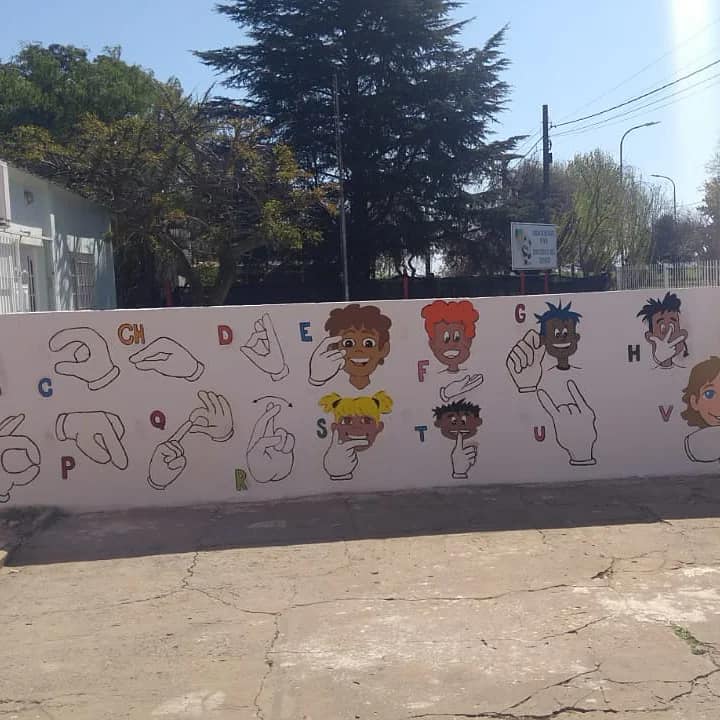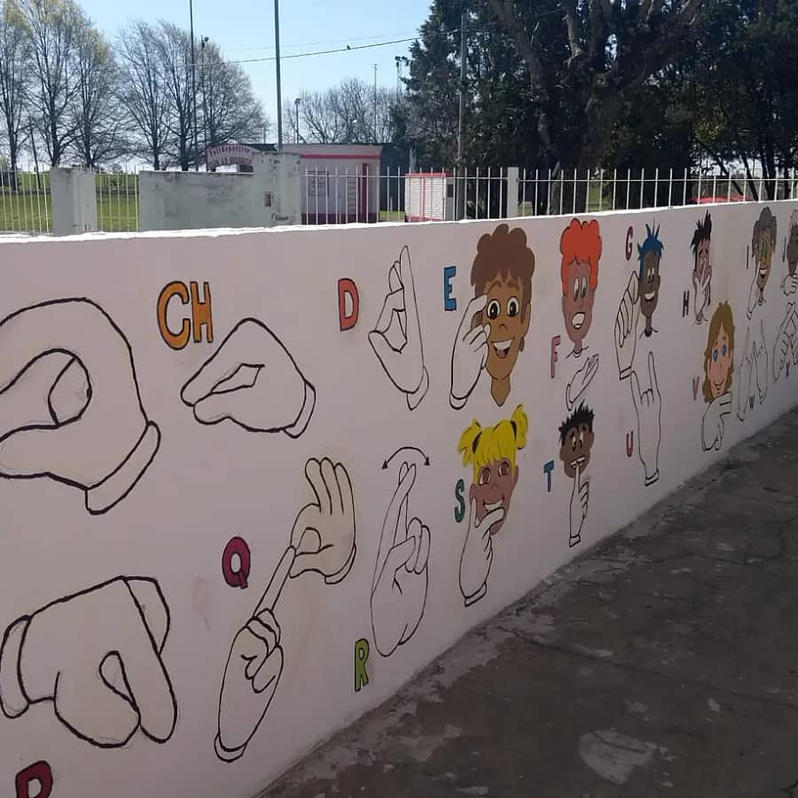 El primer mural se llevó a cabo en nuestra ciudad, precisamente en el Parque Belgrano durante 2020. El mismo, que se desarrolló bajo el lema: “Comunicarnos está en tus manos”, estuvo a cargo del artista pergaminense Juani Méndez, padrino de todos los murales que se pinten en LSA ya que en cada uno de ellos tendrá una participación especial.