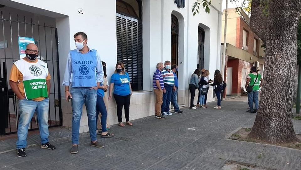 El 12 de febrero se realizó un simulacro de vacunación para dar inicio a la vacunación desde el 18 de febrero y así sucedió hasta que sorpresivamente se dio a conocer el miércoles 24 últimos que dirigentes sindicales de SUTEBA y SADOP Junín se dieron cita en la Escuela de Educación Técnica 1 «Antonio Bermejo» para dar continuidad a la campaña de vacunación antiCovid 19, mientras que en la sede sindical del gremio docente se iba a continuar registrando a vecinos de Junín en el sitio web Vacunatepba.gba.gob.ar.