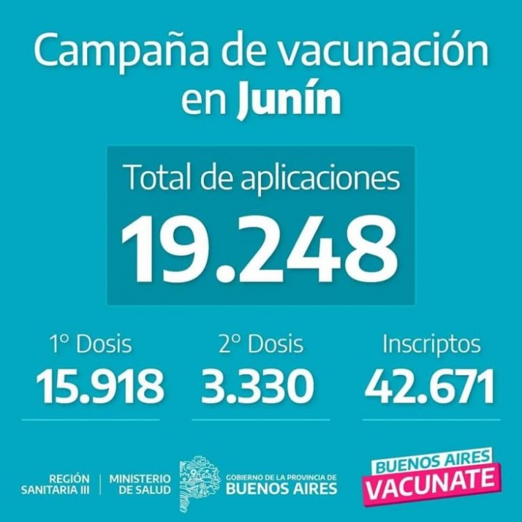 Según información suministrada desde la Región Sanitaria III, se llevan aplicadas 19.248 dosis de vacunas contra el Covid, en el marco de la campaña provincial de vacunación que se está implementando.