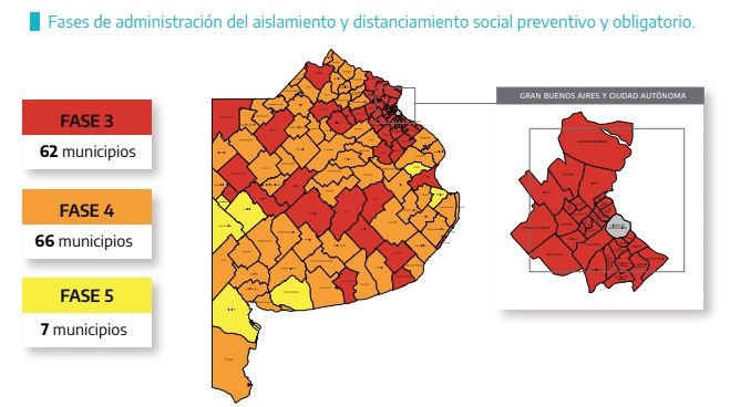 Así, en la fase 3 quedaron unos 62 distritos; en la 4, unos 66; y sólo siete en la 5. En esta etapa más permisiva se encuentran Adolfo Alsina, Coronel Dorrego, Guaminí, Lezama, Salliqueló, Tordillo y Villarino.