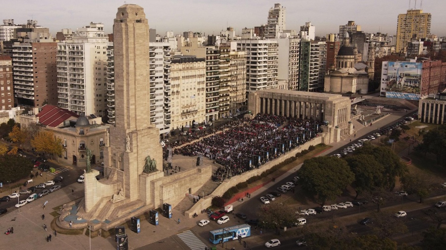 El tradicional acto de la ciudad, que recibe a alumnos de cuarto grado de distintas provincias, se celebró este mediodía en el monumento rosarino frente al río Paraná, donde el general Manuel Belgrano izó por primera vez la bandera nacional.