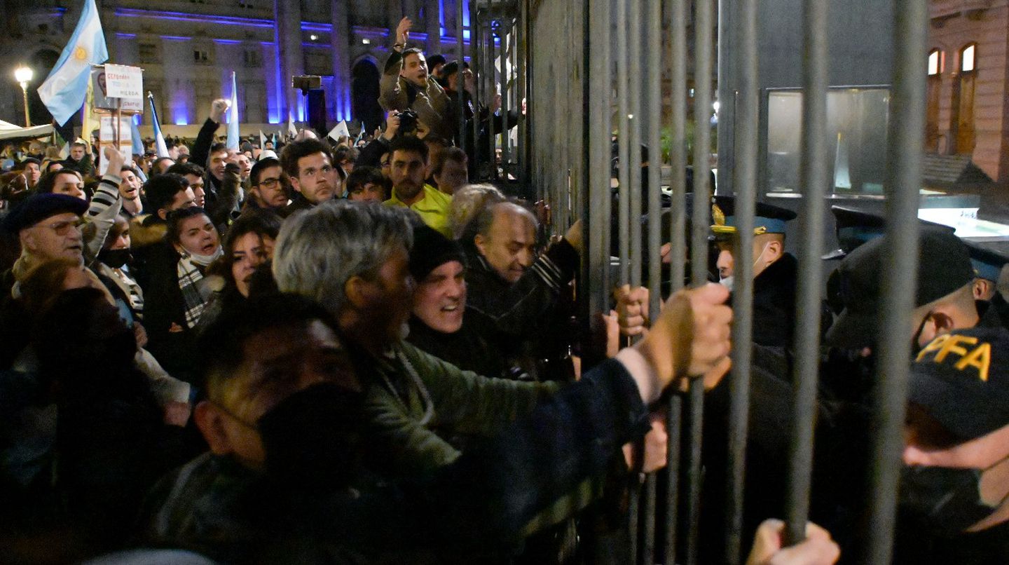 La tensión escaló pasadas las 19, cuando un grupo de manifestantes se presentaron en el frente de la Casa Rosada y se enfrentaron cara a cara con la Policía, rejas de por medio.