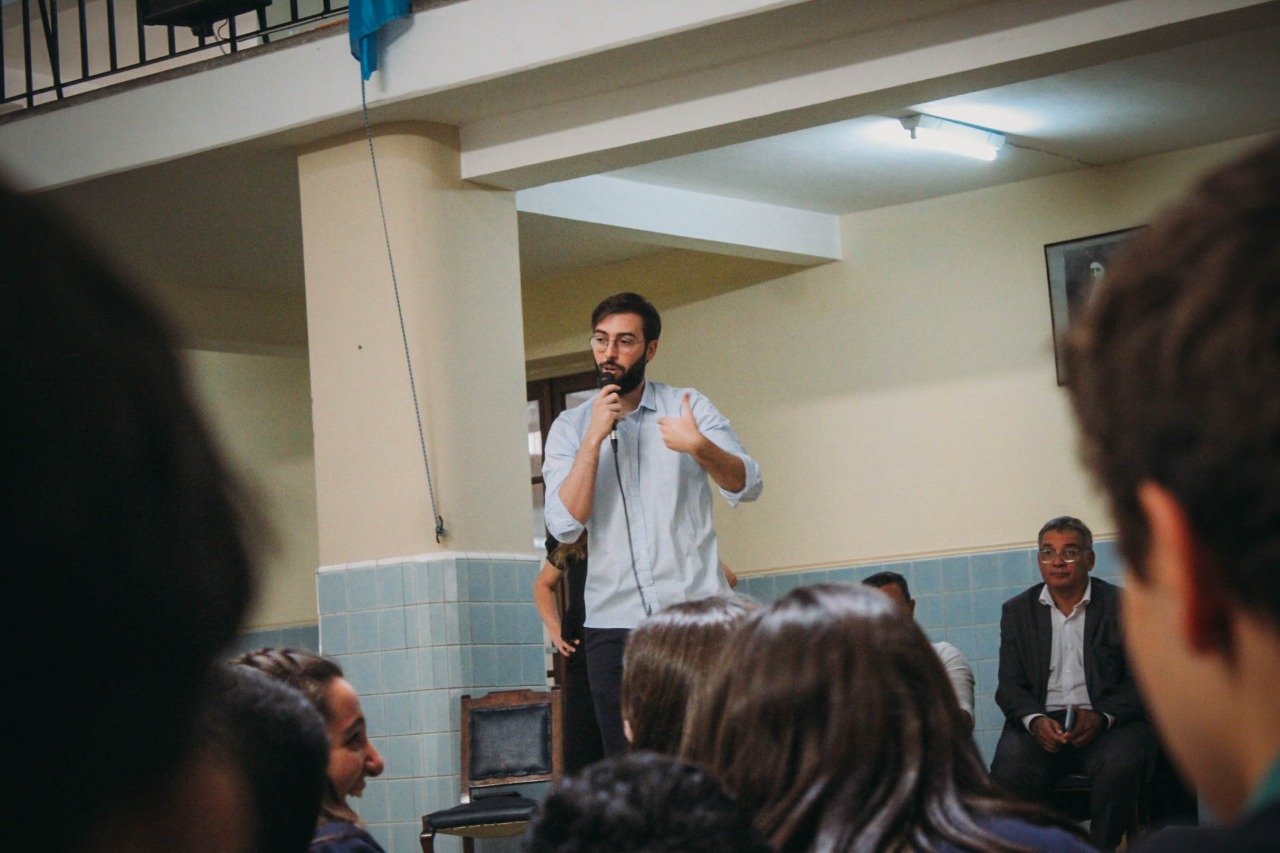 La charla en el Colegio Nuestra Señora del Huerto fue una actividad de cierre de la jornada que organizó el Centro de Estudiantes del colegio en conjunto con docentes, equipo de orientación escolar, equipo directivo y profesionales del Centro “Padre Galli”, en la cual los estudiantes fueron los principales protagonistas de la acción promotora de salud, cuidado y proximidad en su propia comunidad educativa.