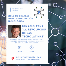 Como parte del programa de Ciclo de Charlas convocadas por el PIT, se presenta en Pergamino un referente internacional; experto en innovación y estrategia. Ignacio Peña es Fundador de Surfing Tsunamis y su presentación sobre la «Revolución de las tecnolatinas» estará basada en un estudio realizado conjuntamente con el BID – Banco Interamericano de Desarrollo.