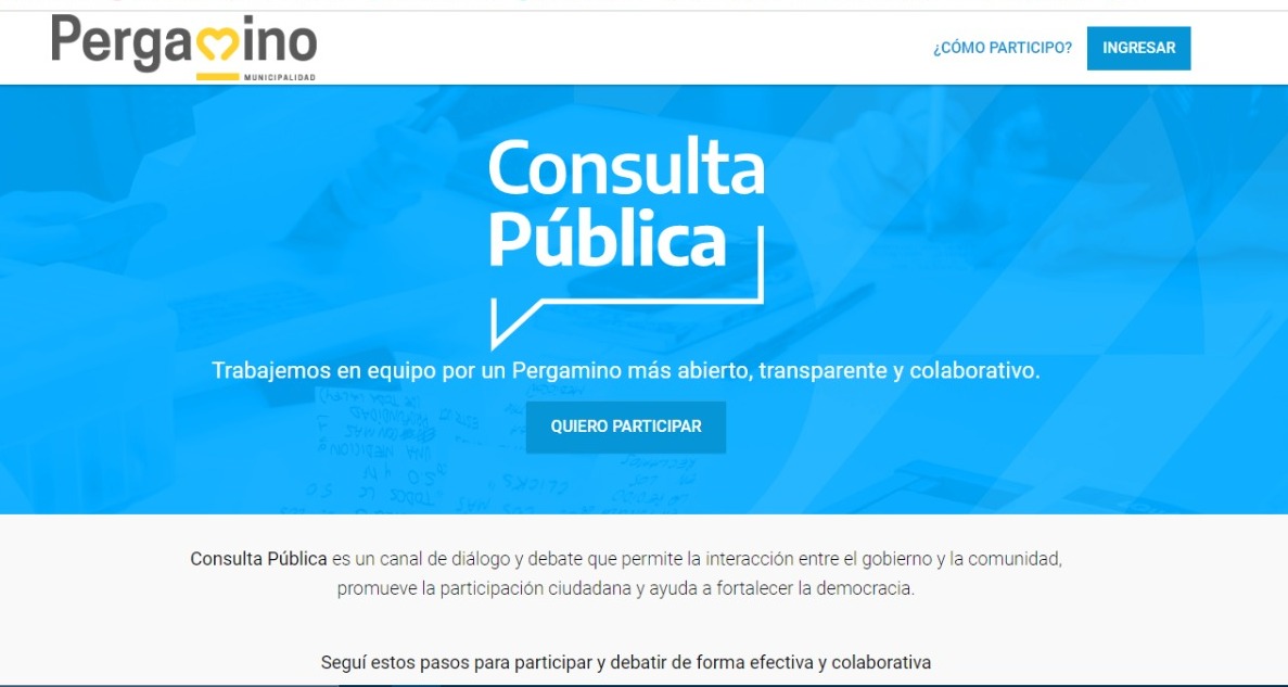 La Municipalidad de Pergamino puso en marcha un sitio web de participación ciudadana con el propósito de recibir ideas, propuestas, consultas y aportes de ciudadanos sobre un proyecto, iniciativa, documento público o borrador de regulación.