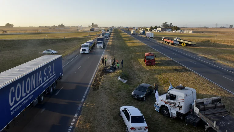 Infobae realizó esta mañana una recorrida por toda la Autopista Buenos Aires – Rosario, la zona más cerca a Capital Federal que registra un alto nivel de conflicto, con la presencia de transportistas al costado de la ruta y bloqueando la misma por espacio de algunos minutos.