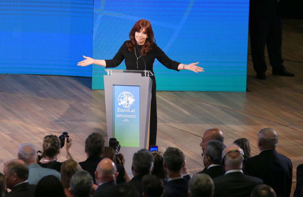 La vicepresidenta se expresó de esta manera durante la inauguración de la Asamblea de EuroLat, que se celebró este miércoles en el CCK. Sin ministros del Gobierno presentes en la ceremonia, la vicepresidenta estuvo acompañada por la militancia y dejó varias definiciones.