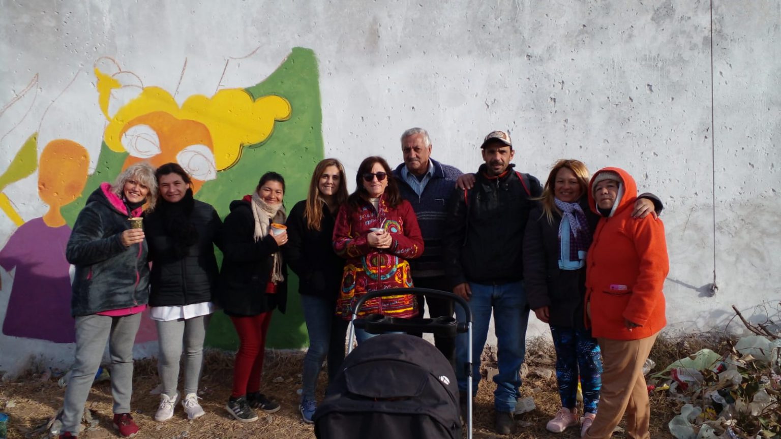Los artistas plásticos Adrián Mastrochio, profesor de Arte del Programa Envión, y Javier Carrera coordinan esta propuesta de la cual participan las vecinas del dispositivo de mujeres del Centro de Prevención y Tratamiento de Adicciones Padre Galli, los jóvenes del programa Envión (a cargo de Ana Paula Tenaglia) y personas que se suman espontáneamente a esta construcción colectiva.