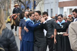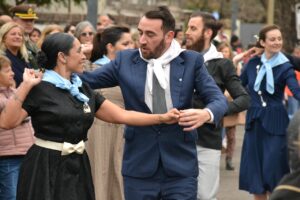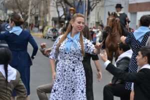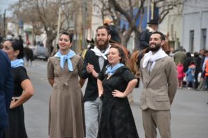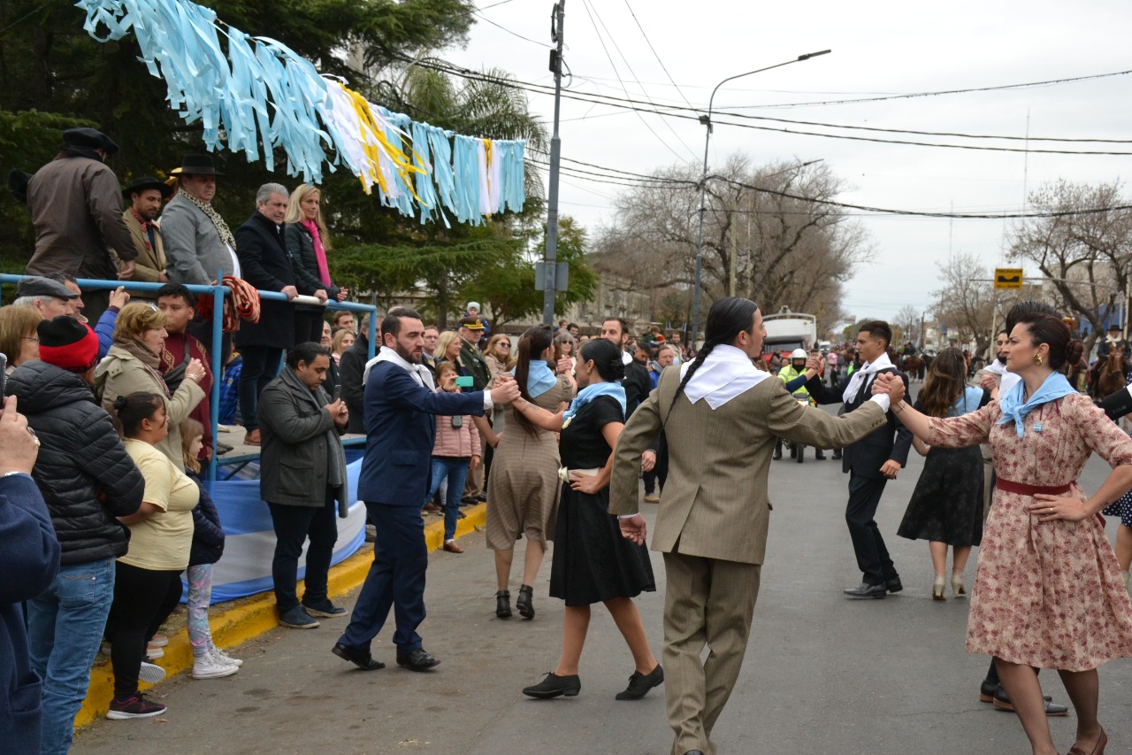 Luego los integrantes del Cuerpo municipal de danzas, que dirige Pedro Marlo, bailaron un pericón en forma grupal con las indumentarias típicas de la época colonial.