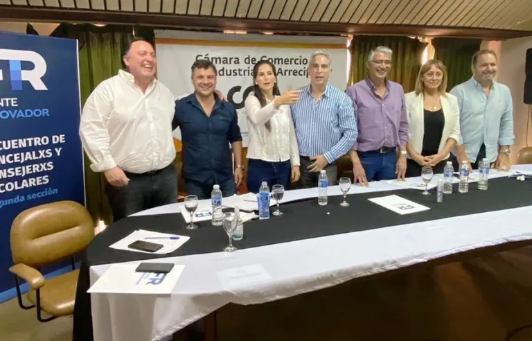 El encuentro, desarrollado en el auditorio de la Cámara de Comercio e Industria de Arrecifes, fue encabezado por el concejal anfitrión Jorge Eterovich, coordinador del FR en la Segunda Sección. Y fue abierto con un mensaje del propio presidente de la Cámara de Diputados de la Nación, a quien los presentes escucharon en forma virtual.