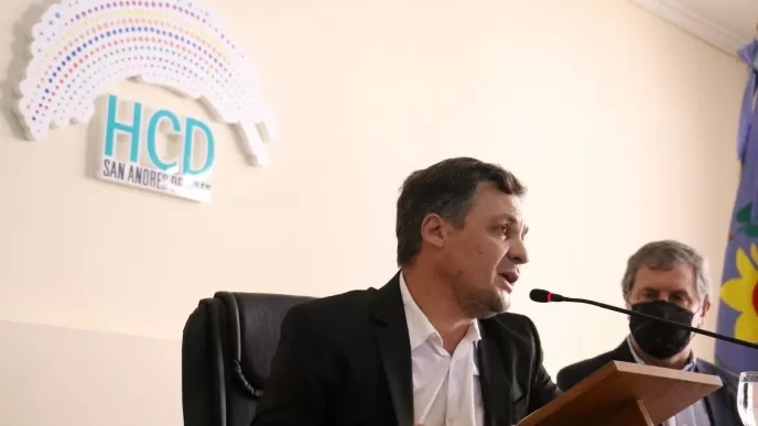 En el recinto de Sesiones del H.C.D. “Héctor J. Cámpora” el intendente de San Andrés de Giles, Miguel Gesualdi fue recibido por el presidente del cuerpo Gustavo Lennard y todos los concejales con el objetivo de dejar abierta las Sesiones Ordinarias de este año 2022.