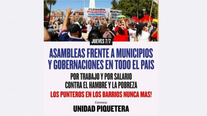 Este jueves 7 de julio la unidad piquetera se concentra frente al Municipio de la ciudad de San Nicolás; en la calle Rivadavia y Pellegrini a las 14hs.