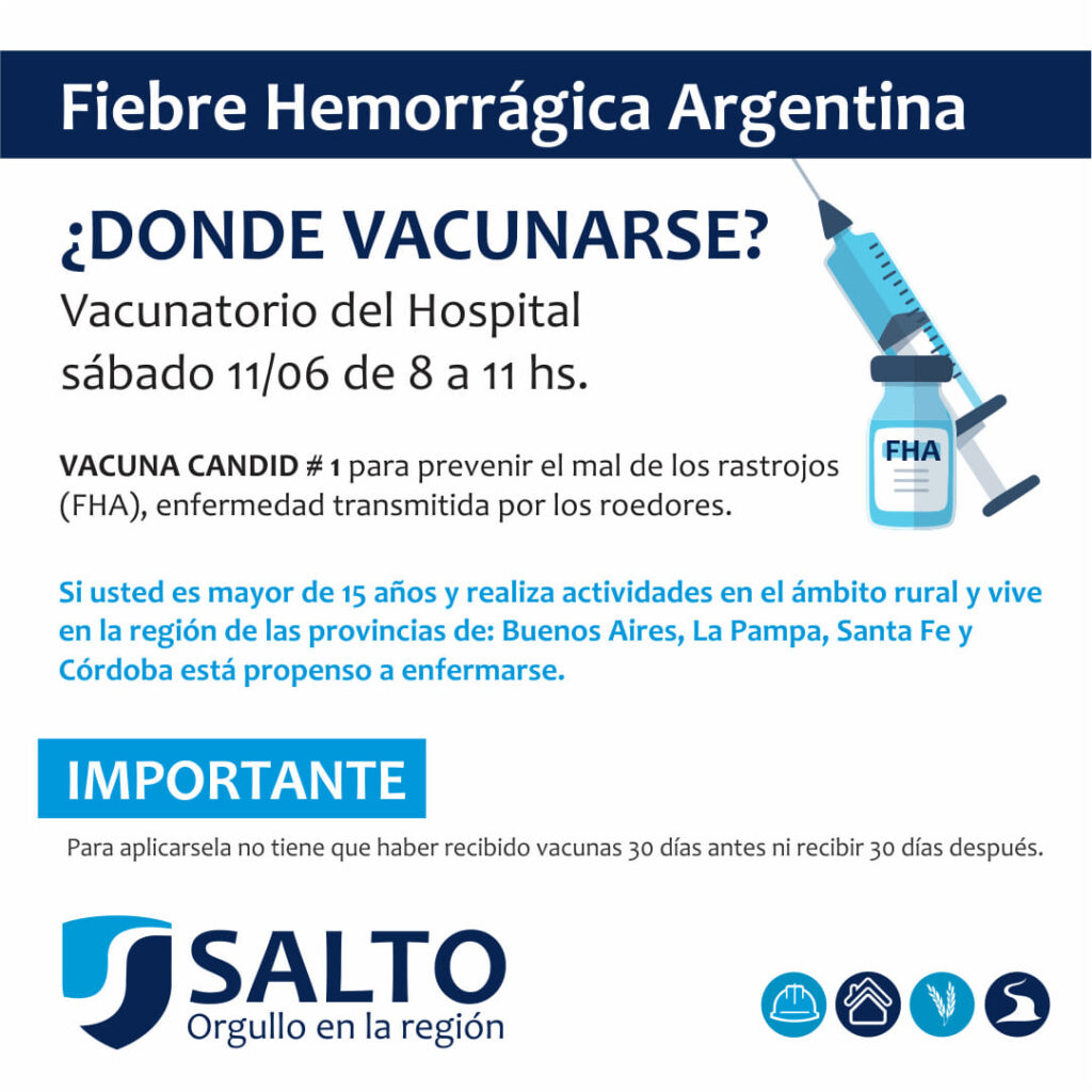El sábado en el Hospital municipal de Salto aplicarán la vacuna Candid 1, desarrollada en el Instituto Maiztegui de Pergamino, para prevenir la Fiebre Hemorrágica Argentina.