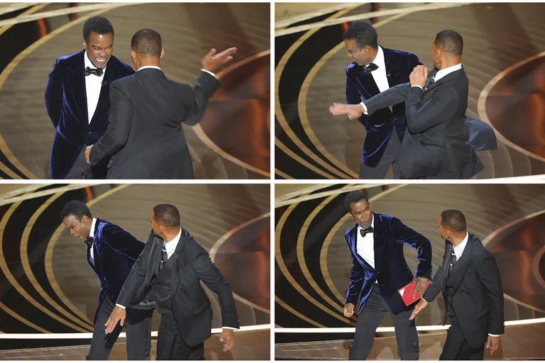 En ese momento, Smith se percató de la molestia que esto había causado a su esposa, irrumpió en el escenario y golpeó al comediante ante la sorpresa de todos los asistentes y del público. Tras la agresión, Rock sólo pudo decir: “Oh, uh”.