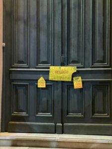 “Nos pidieron que vengamos mañana a las nueve de la mañana que nos van a recibir”, dijo una de las integrantes de la organización. Relató que el gobierno estaba molesto por los bombos y que no podrían mantener una conversación en esos términos. Minutos después, la gente comenzó a sentarse y a guardar silencio para aguardar la salida de Ramón Salazar; pasaron varios minutos y la puerta no se abrió. Hubo gritos y reclamos que se sumaron a aclaraciones de una marcha sin intereses partidarios ni actitudes agresivas.