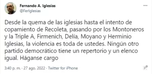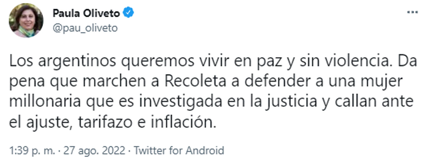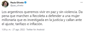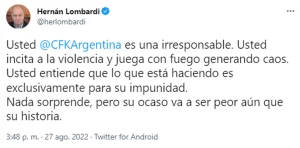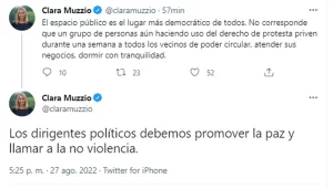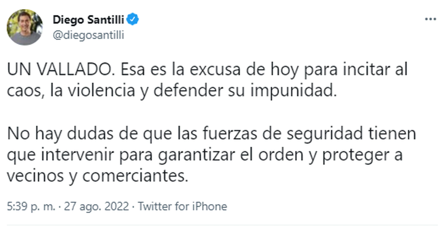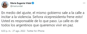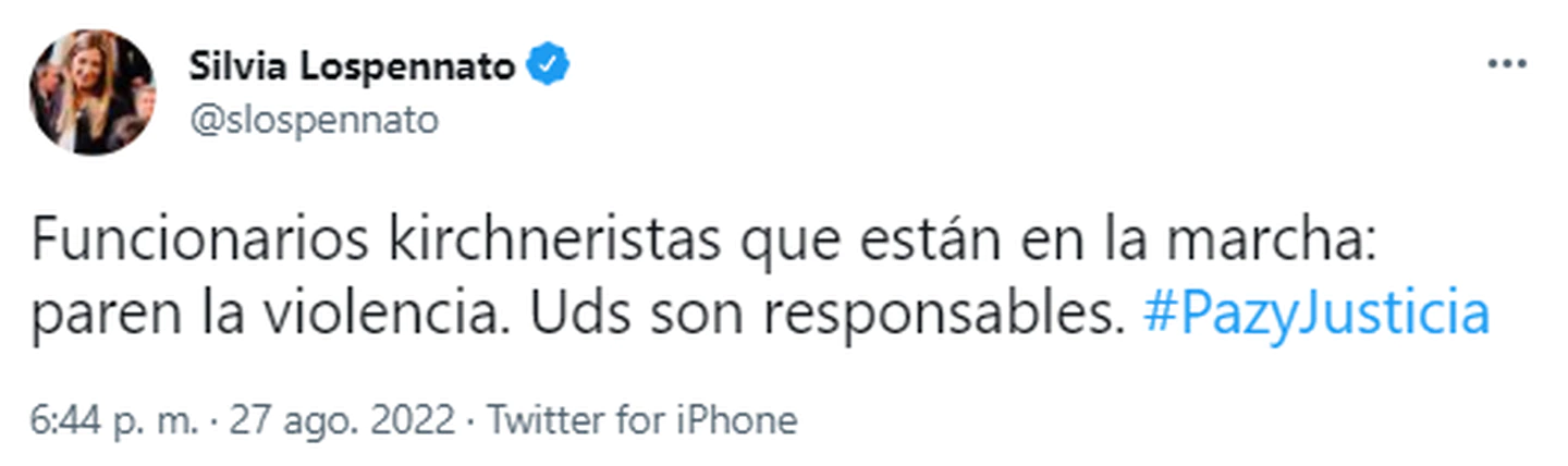 Varios integrantes de la oposición expresaron en las redes sociales su postura en contra del accionar de los militantes a favor de Cristina Kirchner, que tiraron vallas ubicadas cerca del edificio donde vive la vicepresidenta.