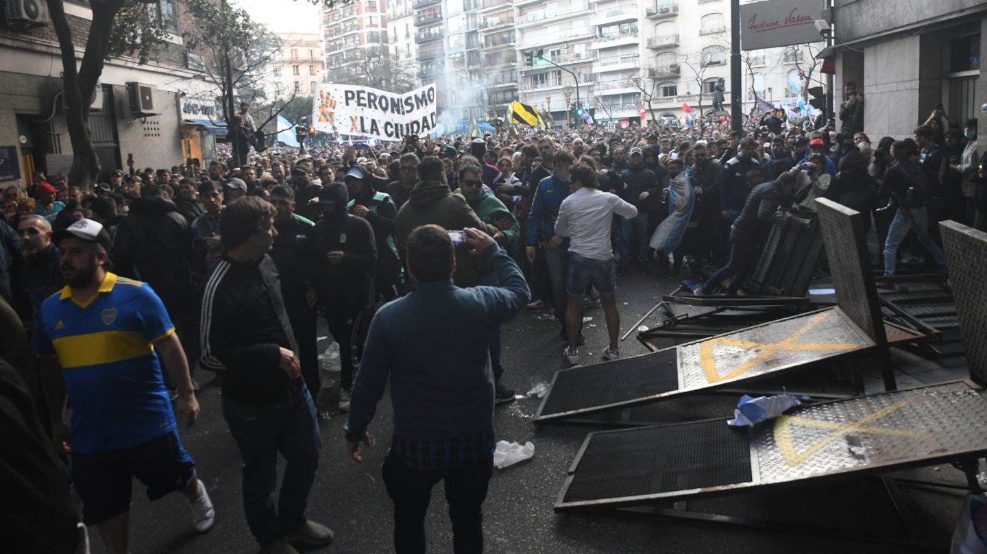 Un grupo de manifestantes derribó algunas de las vallas que impedían el acceso a la cuadra donde reside la vicepresidenta, y a partir se produjo el enfrentamiento con la policía.
