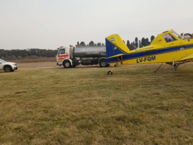 Las autoridades del Plan Provincial del Manejo del Fuego, la Dirección Provincial de Defensa Civil de la provincia de Entre Ríos, la Secretaría de Ambiente de la provincia de Entre Ríos y Defensa Civil San Pedro, acordaron hacer base en el Aeroclub San Pedro desde la mañana del miércoles.