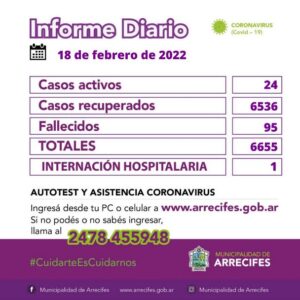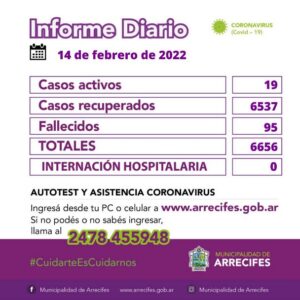 De acuerdo a lo que marca el parte del último 18 de febrero, en el distrito se registraban un total de 6655 contagios desde el inicio de la pandemia. Sin embargo, el reporte del 14 de febrero había marcado que los casos totales habían llegado 6656, uno más que en la actualidad.