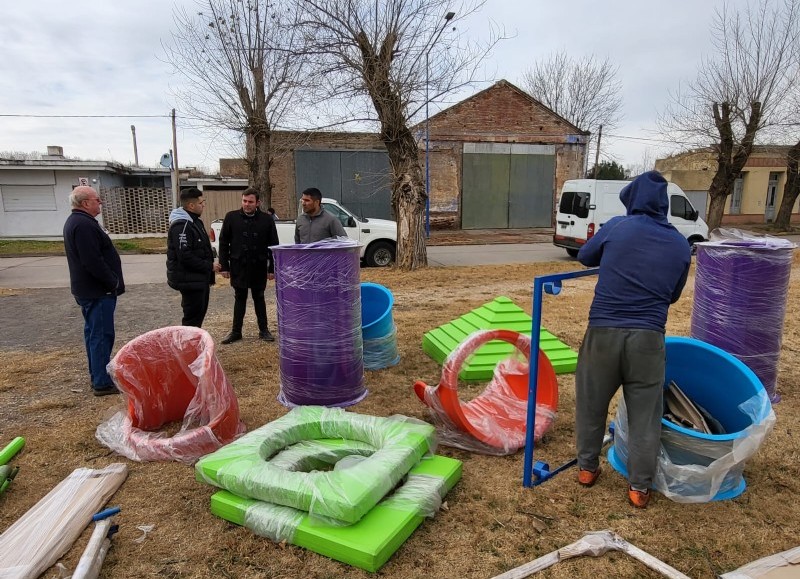 Tal como estaba previsto, comenzaron a colocar juegos infantiles en la Plaza Manuel Belgrano y en la Pista de la Salud en Rafael Obligado.
