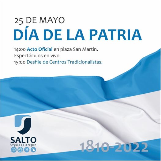 La Municipalidad de Salto, a través de sus redes sociales, está convocando a la comunidad a participar del acto conmemorativo de la revolución de mayo.