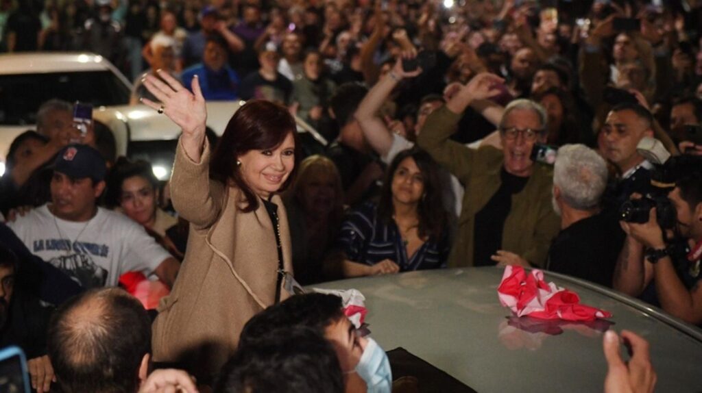 La vicepresidente habló una hora y media, pero su discurso puede resumirse en 3 frases: Nosotros robamos, vosotros robais, ellos roban. Después del mensaje, salió al balcón para agradecer a sus seguidores. Saludaba moviendo la mano como si fuera Miss Procesada 2022.