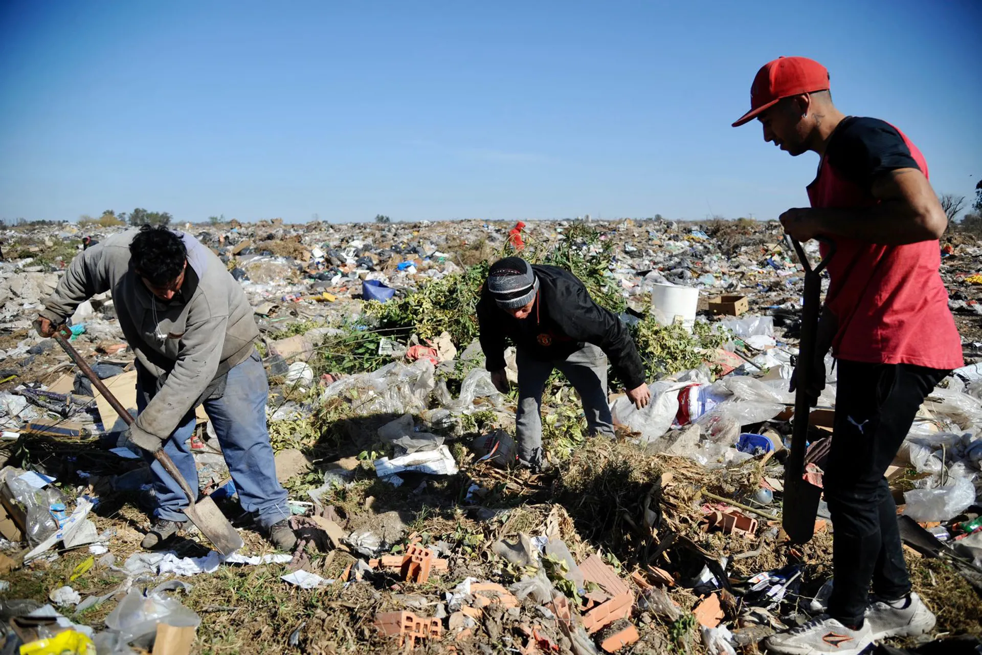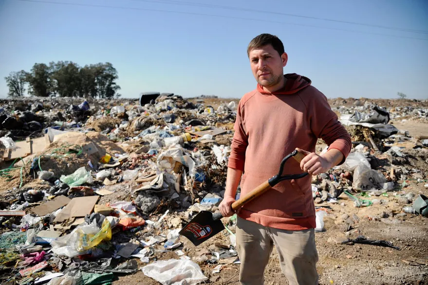 Carlos Martínez, de 30 años, viajó más de 20 kilómetros para buscar el tesoro. “Si encuentro un billete es más de lo que cobro en medio mes. Por eso viene la gente a buscar los dólares porque nadie tiene un centavo”, cuenta. Una mujer de 45 años, comerciante de Las Parejas, remueve con un gancho largo las pilas de residuos. “El ropero está más allá. Si encontramos la plata la dividimos”, les propone al resto. José, un productor agropecuaria de la zona, que llegó solo a mirar cómo buscan el dinero, no duda en que la plata “es oscura”. Otro mito que sobrevuela. “Es plata narco. Tiraron una parte para que después, si aparece un millón depositado en la mutual, se diga que viene del basural”, afirma el hombre, vestido con una campera de gamuza y jeans.