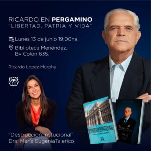 El lunes a las siete de la tarde en la biblioteca Menéndez el ex candidato a presidente Ricardo López Murphy presentará su libro “Libertad, patria y vida” en una charla abierta al público en general.