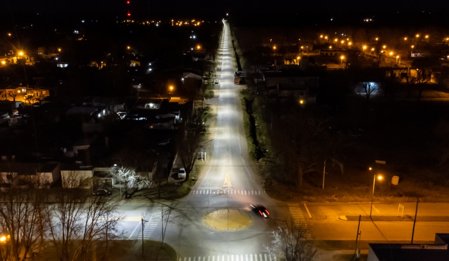 Por otra parte, en el Acceso Eva Perón, camino al Cementerio Municipal, los trabajos incluyeron la colocación de 52 nuevas columnas de iluminación con sus respectivas lámparas de tecnología LED, ya que esta vía no contaba con iluminación.