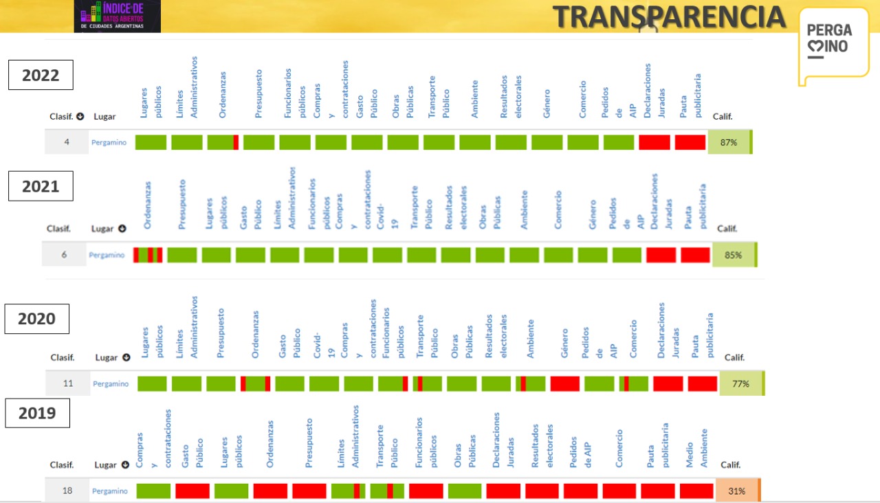 “Es muy importante para un municipio como Pergamino formar parte de este ranking donde hay ciudades que lo conforman con muchos más habitantes, millones en algunos casos. Nuestra Ordenanza Municipal promueve la transparencia activa: datos abiertos disponibles y transparencia pasiva, mediante el derecho de Acceso a las Información Pública. Y la transparencia es uno de los pilares de un Gobierno Abierto, junto a los pilares colaboración, participación ciudadana, e innovación”, explicó la coordinadora de Gobierno Abierto Silvana Pirchi.