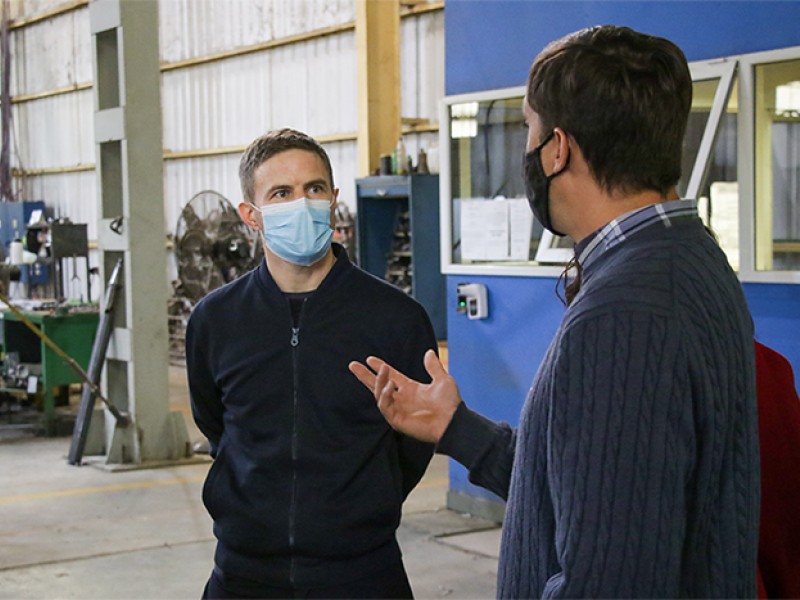 El ministro de Producción, Ciencia e Innovación Tecnológica de la provincia de Buenos Aires, Augusto Costa, visitó el Parque Industrial COMIRSA, donde mantuvo un encuentro con empresarios y empresarias del sector y recorrió las instalaciones de empresas como Laboratorios Ramallo S.A. o la metalúrgica Metalvos SRL.
