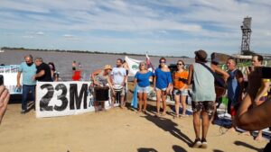 «Nosotros hoy estamos peleando por estos 3 kilómetros de costa, pero nos sumamos también a la lucha que hay en otros sectores donde están siendo afectados por este modelo, que a lo único que apunta es a extraer la riqueza natural de nuestro pueblo y dejarnos solamente la miseria», agregó.