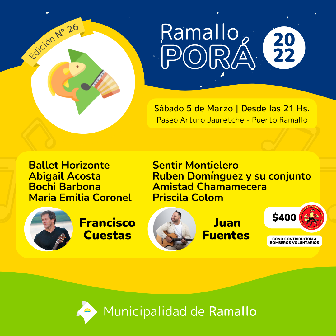 En Ramallo el tradicional festival Porá regresa el sábado 5 de marzo con más música en vivo para disfrutar y sorpresas. Dentro de los artistas que estarán presentándose, contamos con dos invitados especiales: