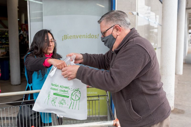 Nicolás entregó bolsas reutilizables en supermercados de la ciudad para incorporar nuevos hábitos en el